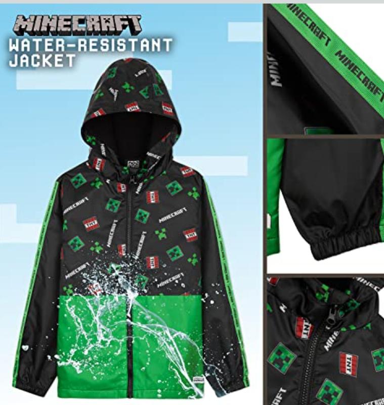 Куртка Minecraft для мальчика, детский плащ с узором креппера, ветрозащитный плащ на 11-12 лет длина 62 см ог 46 см. рукав 56 см в идеальном состоянии. верх плащевка утеплитель флис.
