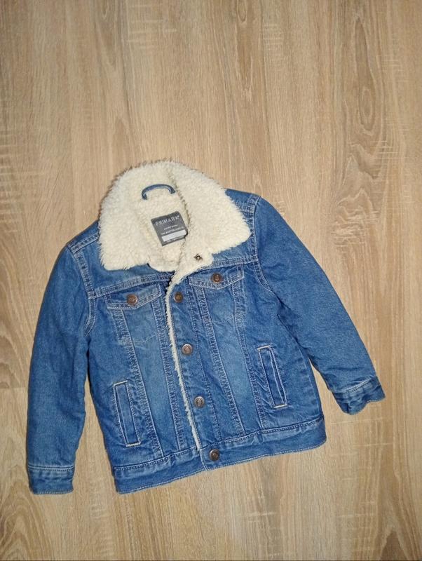 Джинсовка на овчине 3-4 года закрывается на кнопки длина 40,5, ширина по груди 36, рукав 36