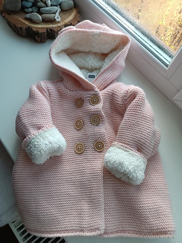 В’язана кофтинка на 9–12 місяців Мила рожева в’язана кофтинка з білою опушкою всередині. Дуже м’яка, тепла й комфортна для малюка. Опушка додає ніжності та добре зігріває, кофта не колеться та приємна до тіла. Ідеальна на прохолодну погоду. Стан чудовий, без нюансів.