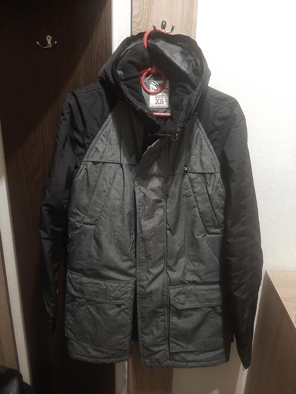 Куртка демісезонна на хлопця з капюшоном. Застібається на блискавку та ще додатково на кнопки. Має 2 нижні кишені, а також додаткові кишені на грудях та з внутрішньої сторони. ОГ 50, довжина рукава 79 (в середині рукава ще є трикотажний манжет), ширина плечей 50 см, довжина виробу 78 см, ширина 54 см. Куртка потребує хімчистки, бо є затертості в області кишень, комірця. Також, є сліди на рукавах (пропалено) та спина (є на фото) Якщо будуть потрібні додаткові фото-скину.