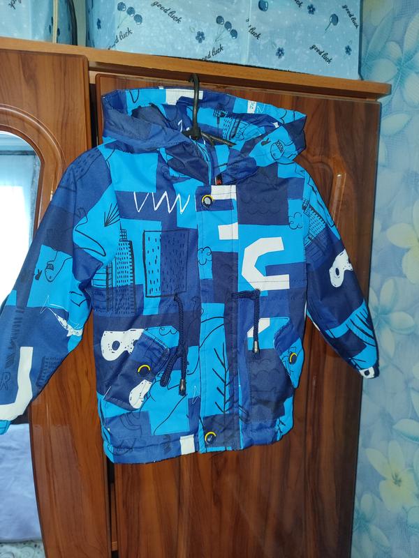Весняна куртка з непродувної та непромокаючої тканини, в середні утеплена. Є один нюанс на останньому фото. Заміри довж -42см. довж. рукава від горла -42см довж. рукава від плеча-34см. ширина -34см.