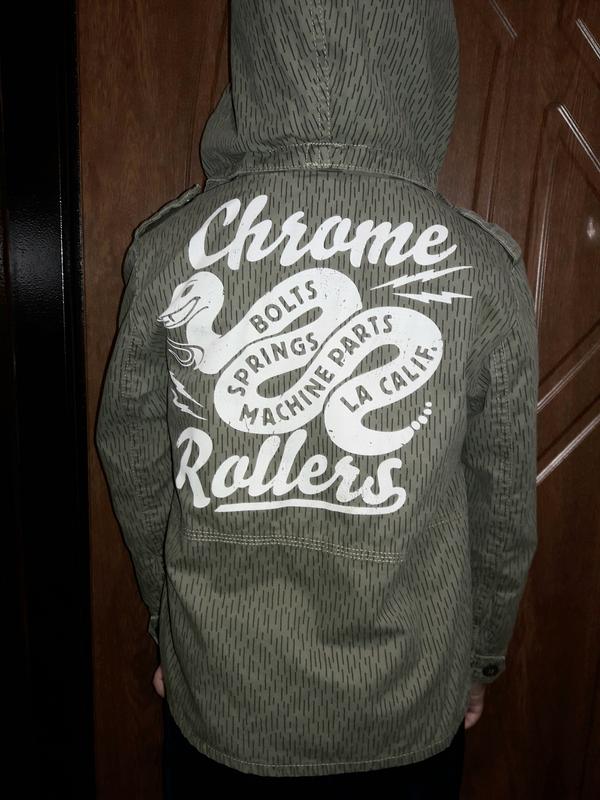 Дуже класна куртка із щільного котону на теплу весну-осінь. Стан нової! Заміри: Довжина від плеча 47 Довжина рукава від плеча 43 Плечі 35 Ширина 39