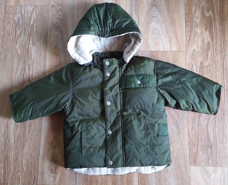 Курточка зимова фірми GAP. В гарному стані. Без нюансів. Дуже тепла. По бірці на 12-18 міс, але по факту маломірить, в ідеалі до 1 року. Якість Супер! Підкладка всередині бежево-сірого кольору.