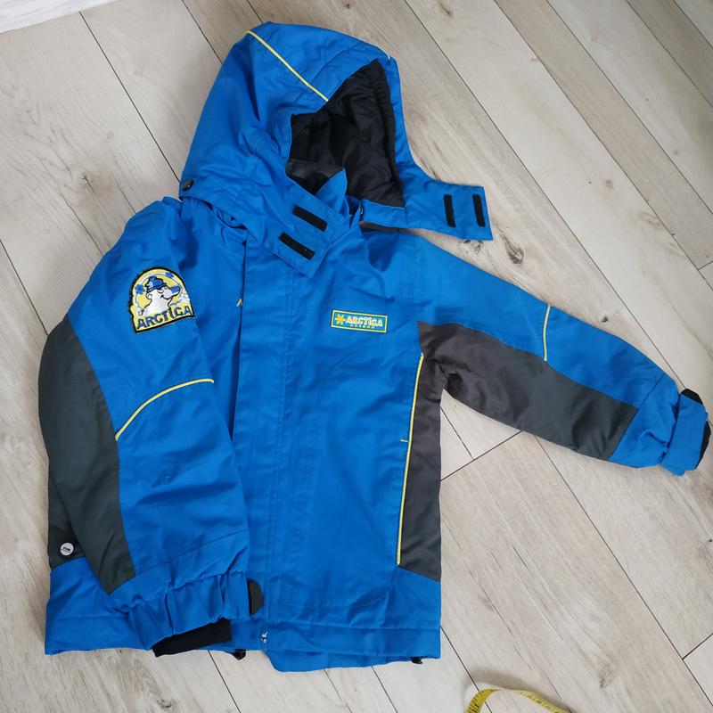 Курточка бо не довго. На прохолодну вітряну осінь, або на теплу зиму буде відмінно. Від подм до пахви 40 см Довжина від плеча 45 Рукав від верху 40+ ущільнювальні гумки Кишені функціональні Є дефект внизу біля блискавки зчесаний куточок