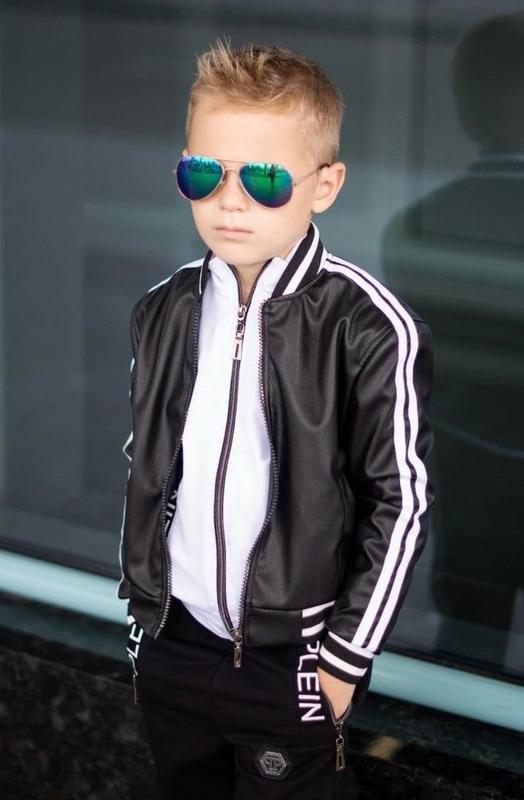 осень - весна Размеры: 116-122, 122-128, 128-134, 134-140, 140-146, 146-152, 152-158. Ткань: турецкая структурная эко-кожа высокого качества Куртка на змейке, два кармана. Пришивные лампасы. Воротник, манжеты на рукавах и низ куртки на резинке. Куртка на подкладке. Цвет: чёрный.