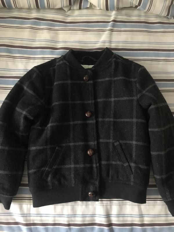 Дуже стильний вовняної бомбер французької фірми Vertbaudet. В ідеальному стані, утеплений для хлопчика. Розмір 114 - 6 років Манжети і воріт - гумкою. Але я б рекомендувала орієнтуватися по замірам.