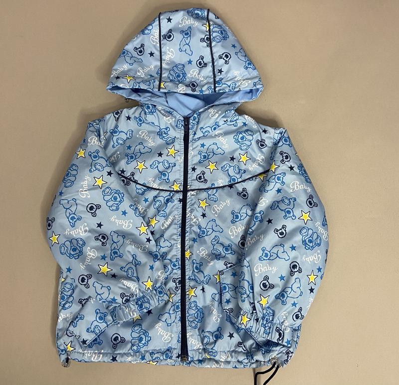 Турецька куртка вітровка для хлопчика на флісі! У Стягується по низу та за капюшону куліскою, Якісна плащівка., Куртка в наявності, швидка відправлення.. Розмір 98 см Заміри довжина -40см Рукав - 35 см Ширина -35 см Заміри: