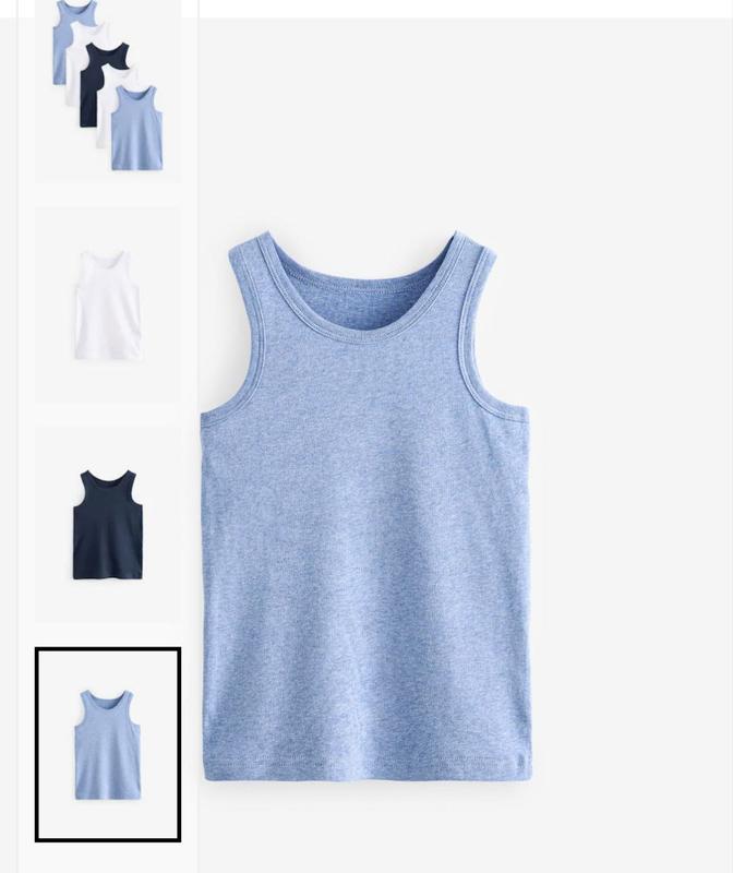 осталась только голубая цена указана за одну! Майки некст для мальчика. 100% бавовна Комфортная и приятная к телу, из высококачественного трикотажа. в наличии размер 9-10 лет на рост 134-140 см длина - 54 см, ПОГ - 37 см Стандарт органического содержания 100 (OCS 100) проверяет процент органично выращенного хлопка и отслеживает его от источника до конечного продукта. Этот продукт содержит по крайней мере 95% сертифицированного органично выращенного хлопка.
