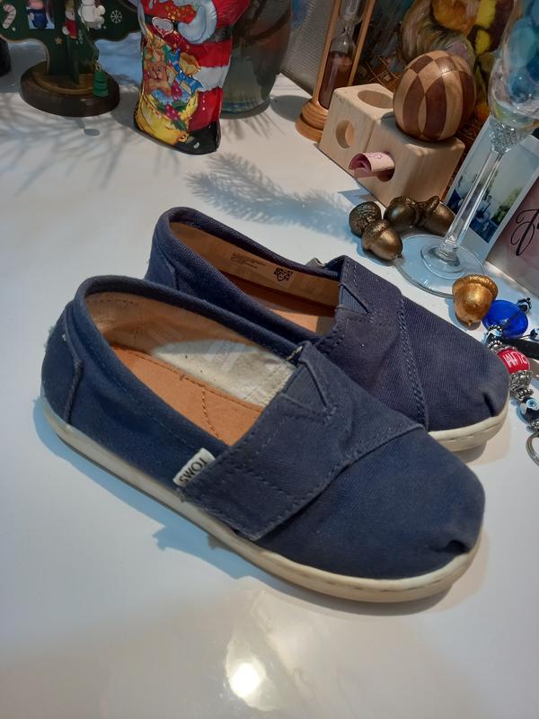 фірмові дитячі мокасини Tom's в дуже гарному стані з невеликими слідами використання у вигляді невеликих потертостей на підошві та устілці в стандартних місцях, виготовлені з текстиля, виробник В'єтнам, дуже зручні та комфортні, липучки тримають добре, розмір 28-28,5 довжина устілки 17,5 см