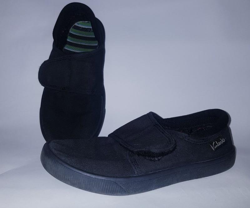 Легкі, текстильні мокасини на липучці, ідеально в школу,садок для сменки! Фірма Clarks, розмір 11F(29),але большемерят, по устілці 19,5 див. Стан відмінний