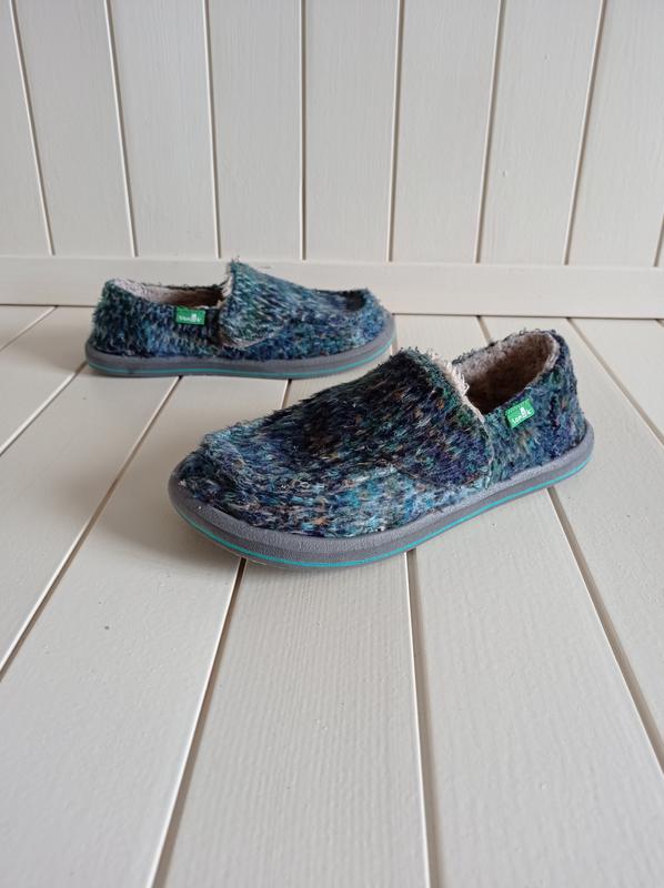 Мокасини тапки Sanuk тканеві, устілка єва. - Розмір US 13, UK 12, EUR 30, по стельці наміряла 19см є точно, не зйомна. - Гарний Стан, без дефектів, в середині хутро втратило білизну і є трохи катишки, всн ціле. Купи 2, 3... речі і отримано знижку.