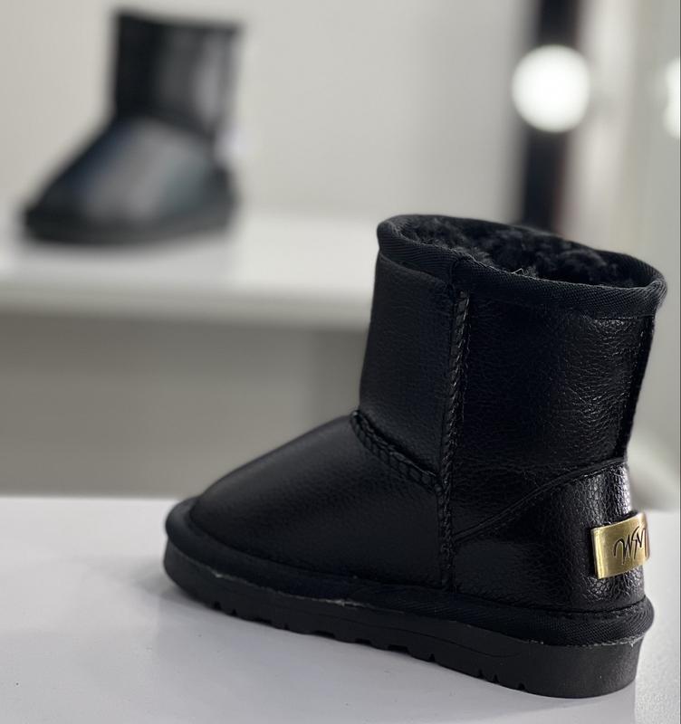 Дитячі угги із натуральноі шкіри а наурального хутра всередині.Чудово підходять як для хлопчиків, так і для дівчаток Зручно взуваються з високим підйомом Залишився один розмір 24 По замірам (устілка не виймається) орієнтовно 15-15,5 см. По підошві 18 см. Висота з пілошвою 14 см