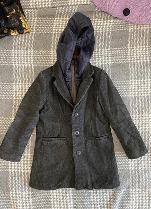 Стильне піджак пальто з капюшоном, який разом з синьою вставкою знімається, можна носити окремо пальто.