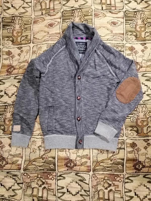 Жакет на мальчика, возможно для школы. Качественный и удобный, интересные пуговицы, рукав реглан. Длина 52, рукав 51, ПОП 36, ПОГ 43.