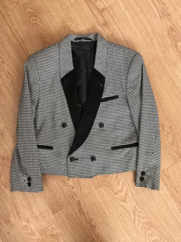 Продам стильний піджак в клітинку для хлопчика. Розмір - 140. Піджак має внутрішню кишеньку. Дефект при носінні непомітний - сліди жовтизни на лівому рукаві (див. останнє фото). 50% - віскоза; 50% - ацетатне волокно (штучне волокно). Відправлю Новою поштою, УкрПоштою або Meest. Дивіться інші мої оголошення ❤️