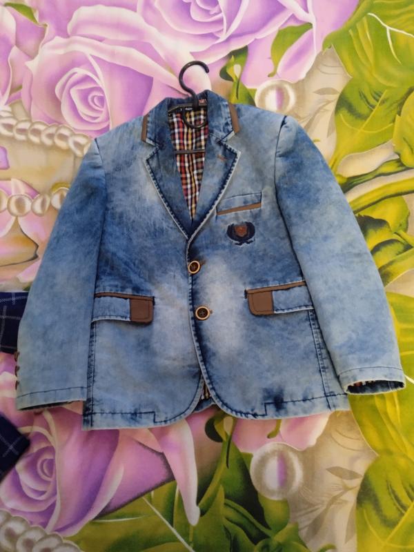джинсовий піджак на хлопчика. дуже стильний, нарядний. ідеальний стан. заміри зроблю, додаткові фото також.