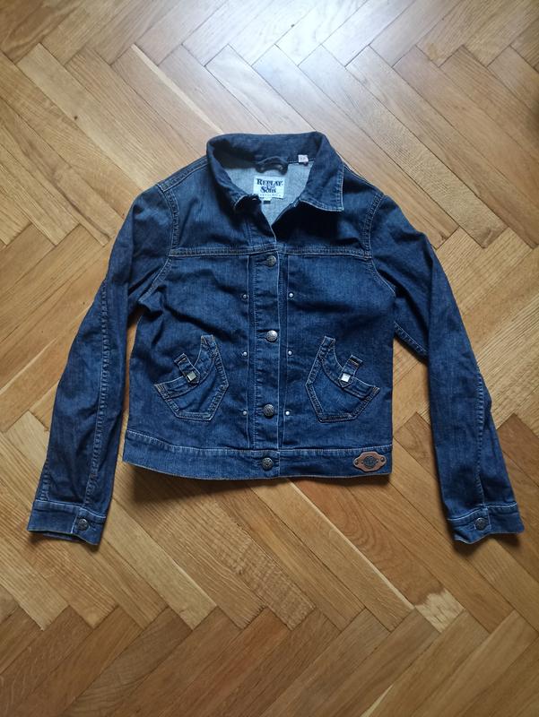 Джинсовый пиджак темно-синий Длина 48 см Длина рукава 55 см Подойдет на рост 148 см