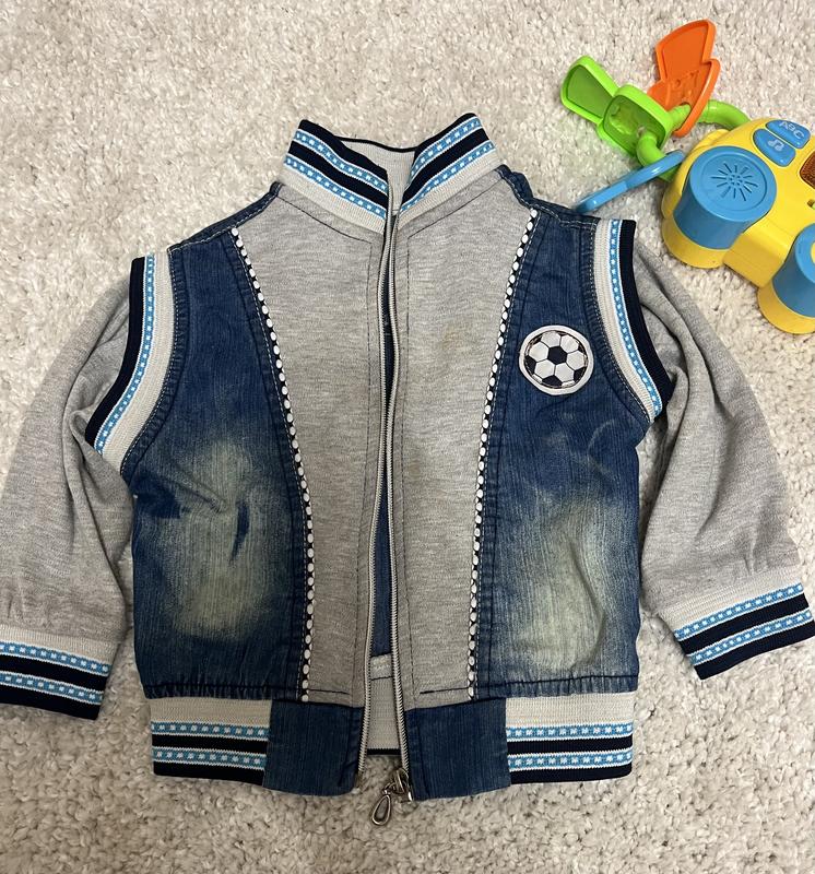 Джинсовка з вставками в гарному стані, розмір 86, на 1-2 рочки, можна як для хлопчика так і для дівчинки, заміри на фото. Виробник Турція