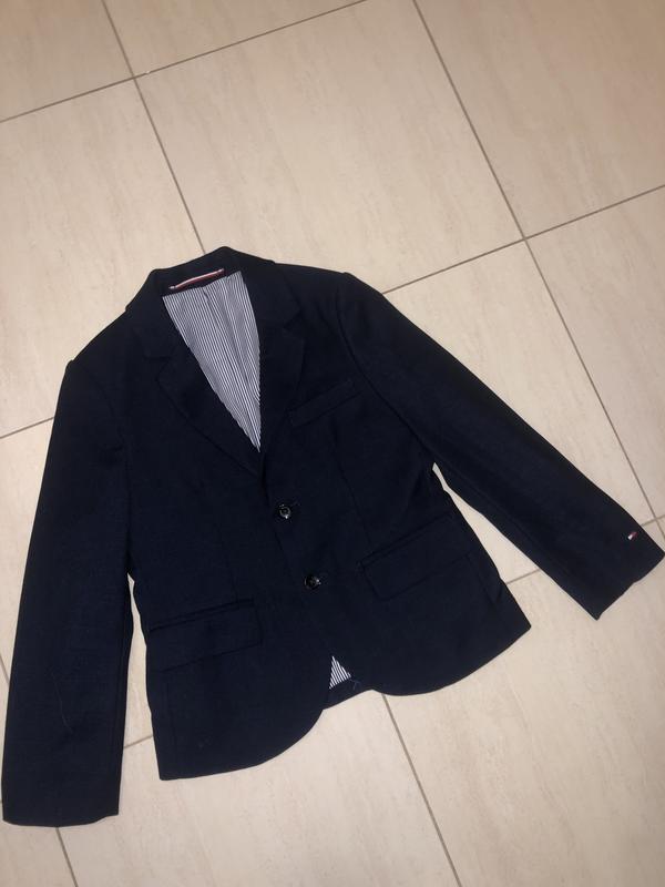 Стильный жакет, практически новый, темно- синий, качественная структурная ткань. На рост 116 см, смотреть замеры.