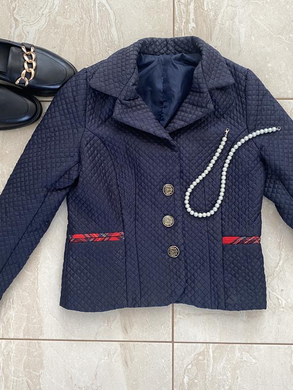 Піджачок жакет Стан ідеальний 😍 Гарно сидить на тілі Не знаю на який вік дитини, потрібно дивитися по замірах Замірий: Пів обхват грудей 40 сантиметрів Пів обхват талії 36 сантиметрів Довжина рукава 51 сантиметр Довжина плечей 37 сантиметрів Довжина піджечка 47 сантиметрів За замірами та додатковими фото, звертайтеся 😘 Завжди можна поторгуватись☺️ Переходьте у мій профіль, там ще багато цікавого і величезний вибір одягу❤️