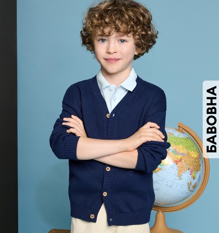 Кардиган, кофта на ґудзиках, приємний, мʼякий бавовняний матеріал, стан чудовий, носили не довго в школу (1 клас)