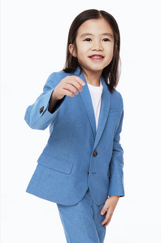 Фірмовий піджак з тканої тканини на 2-3 роки з лацканами з вирізами, декоративною нагрудною кишенею та фальшивими кишенями з клапанами спереду. Застібається на ґудзики спереду, декоративні ґудзики на манжетах та має один шліц ззаду. На підкладці. Верхній матеріал: Бавовна 100% Підкладка: Поліестер 100%. Стан відмінний Заміри6 довжина по спинці від плеча 40 см, ширина між пахвами 33,5 см, плечі 26,5 см, рукав від плеча 32,5 см, по внутрішньому шву 21 см