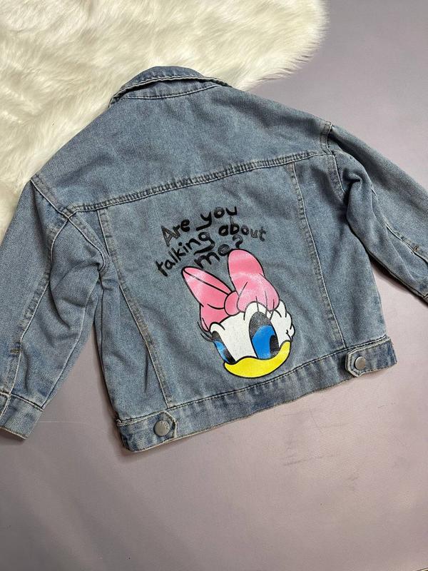 Піджак джинсовий Стан: ідеал Розмір: 110 (краще брати на 100) Від плеча до плеча 41,5 Напівобхват груди 41 Рукав 29 см Довжина по спинці 43,5