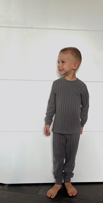 Термобілизна, яку можно використовувати як піжамку для холодних ночей Неймовірно м’яка та приємна до тіла Спеціальні шви, які не приносять дискомфорту Еластичні манжети Графіт, молочний, блакитний 100-110 см 110-120 см