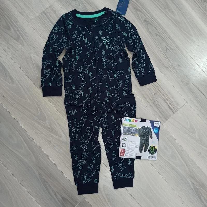 Комбінезон-сліп, піжамка Lupilu хлопчику на ріст 98-104 (3-4роки).Новий,заводський сток. Якість відмінна.В темноті світиться. В наявності є 2 шт. Заміри:-довжина 82см,крок-34см,до паха-50см,плечі-25см,рукав-36см,пог-32см.