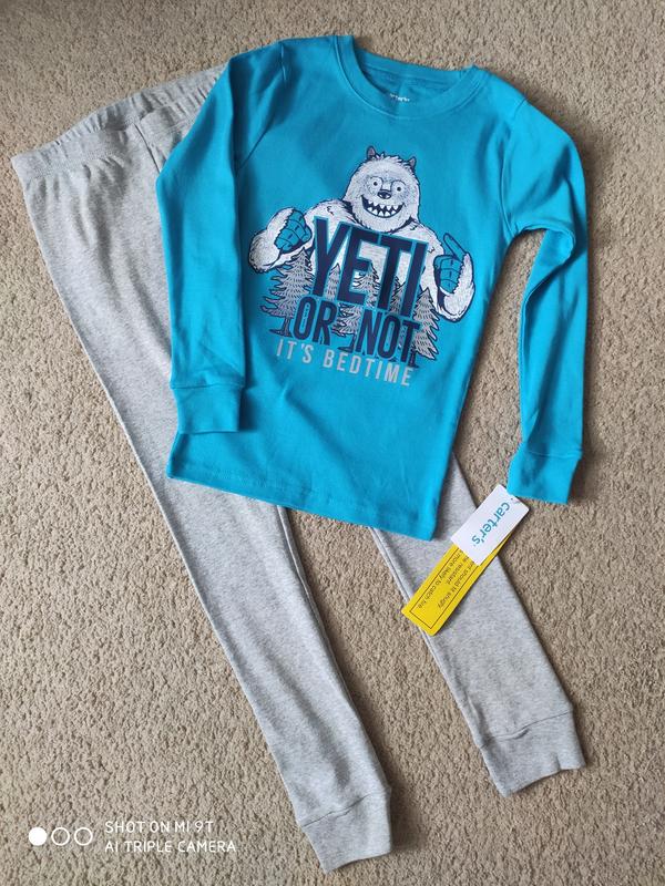 Піжамка америк.фірми Carter's. Розмір 7( по розмірній сітці фірми на зріст 122-131см). Заміри кофтинки: довжина ззаду від плеча-47см, ширина під ручками-29см, довжина рукава від плечового шва-43см. Заміри штанів: довжина ззаду з поясом-77см, ПОТ-27см, внутрішній шов-57см. Склад: 100% бавовна, м'яка і приємна на дотик.