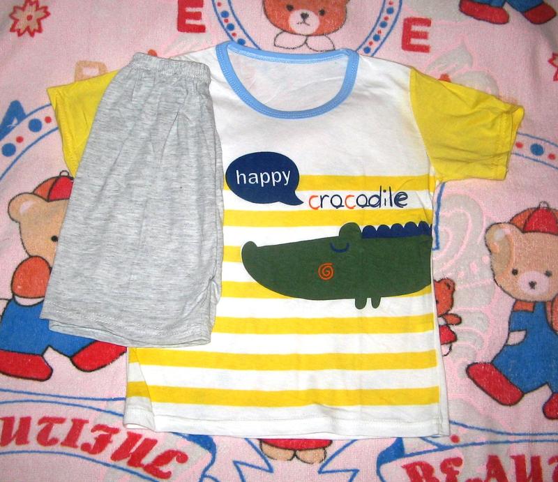 Піжамка, домашній костюм "Щасливий крокодил" на літо забезпечить максимальний комфорт, зручність. М'яка, еластична річ не гнобити рухи дитини, тонка тканина дозволить шкірі дихати, не викличе роздратування. Футболка комбінована біла з жовтим, шорти світло сірий меланж. Виробництво Китай. Склад: 100% бавовна , тоненький і приємний на дотик. Пишеться розмір 110, але на мій погляд маломерит і підійде на вік 3-4 роки, зростання 98/104, орієнтуйтеся по замірах. ФУТБОЛКА плечи 26,5 см Полуобхват груди 31 см Длина 41 см ШОРТЫ длина по боку - 30,5см ширина пояса резинки -18,5 тянется до 38см ширина штанины по низу - 18см Возврат не предусмотрен , делайте покупку обдуманно. Смотрите другие мои темы, экономьте на доставке.