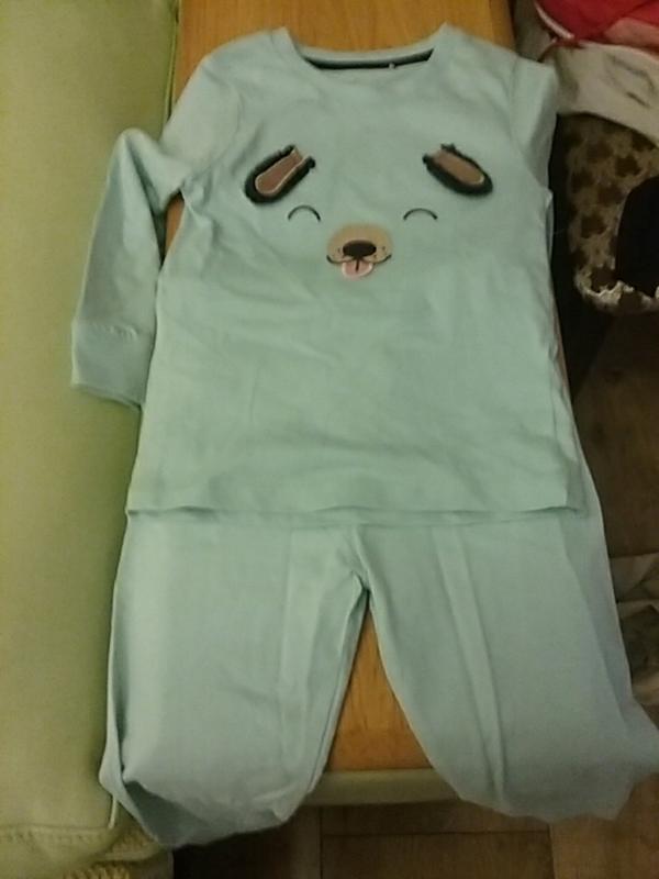 нова піжама носик і очі вишиті,вушка пришиті пухнасті по краях можна піднімати і опускати,ріст 98-104 ,колір ніжно голубий,нова залишилася з набору з 2 піжам,дуже-дуже гарна.