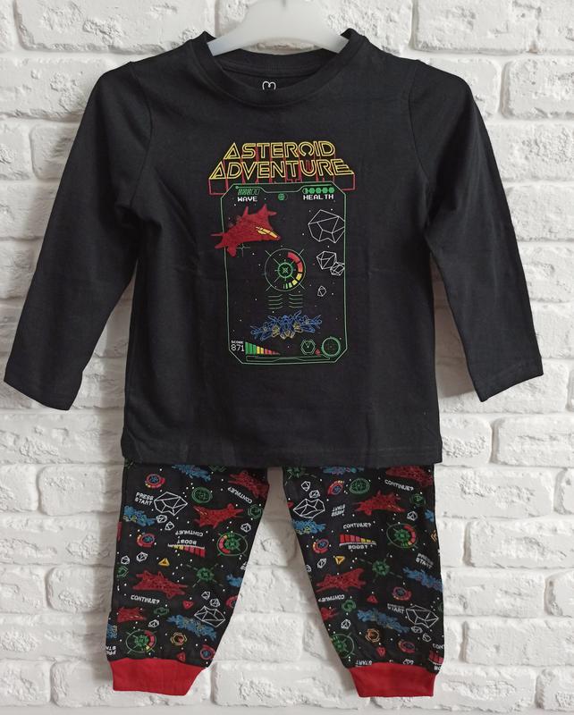 Пижама Primark c принтом космос. Размеры: 92(1,5-2) : длина кофты 40см, ширина 31см, длина рукава от плеча 37см, плечи 25см, длина штанов 50,5см, ширина по талии 24см, по бедрам 30см. 98(2-3) : длина кофты 42см, ширина 32см, длина рукава от плеча 35 см, плечи 27см, длина штанов 54см, ширина по талии 24см, по бедрам 32см. 110: длина кофты 43,5см, ширина 36см, длина рукава от плеча 39см, плечи 28,5см, длина штанов 63см, ширина по талии 26см, по бедрам 33см. Состав ткани: 100% коттон. Страна-производитель: Индия