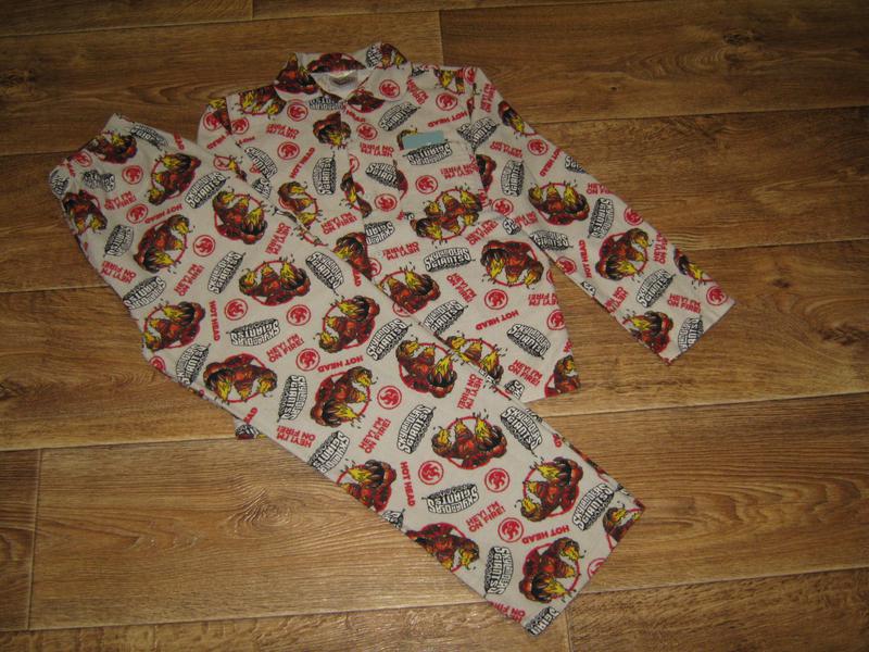 піжама для хлопчика 9-10 років, в хорошому стані, заміри: верх-довжина-50,5 см, ширина-39 см, довжина рукава від плеча-48 см, від горловини-58 см; штани: довжина-81 см, крок-56 см, ширина в поясі 26 см+. Обов'язково дивіться виміри і додаткові фото. Рекомендую дивитися всі оголошення,в наявності багато речей. Вдалих покупочек! )))