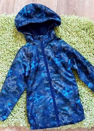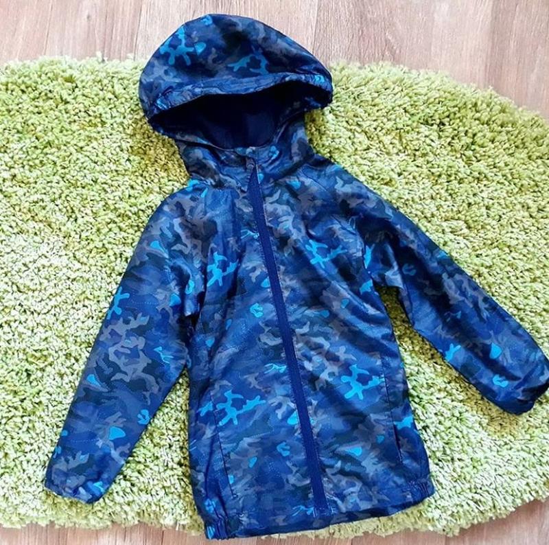 Відмінна, якісна водонепроникна вітровка-дощовик фірми Mountain Warehouse. Розмір 5-6 років,на зріст 116 див. Всередині підкладка-сітка. Застібається високо під горлечко. Заміри: Довжина від плеча до низу 49/51 Ширина під ручками 37 см Рукав від капюшона 45 см