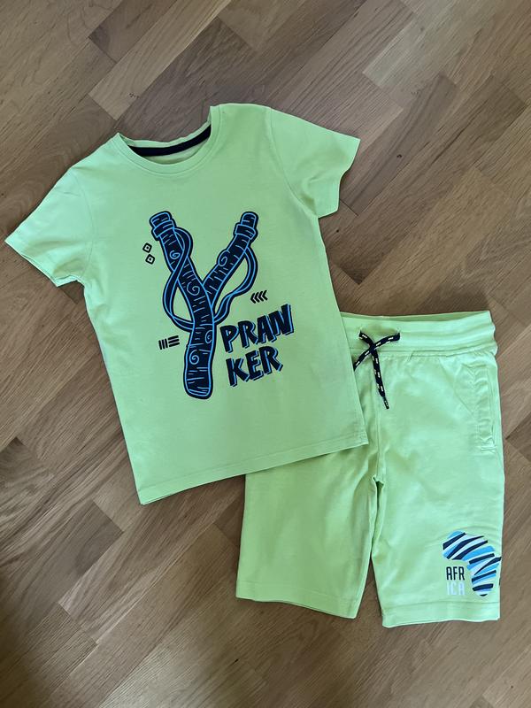 Красивый набор для мальчика Pepco в отличном состоянии. Футболка 3-4 года, пог 32,5 см, длина 44 см; шорты 4-5 лет, пот 27 см (резинка, шнурок), длина 35 см.