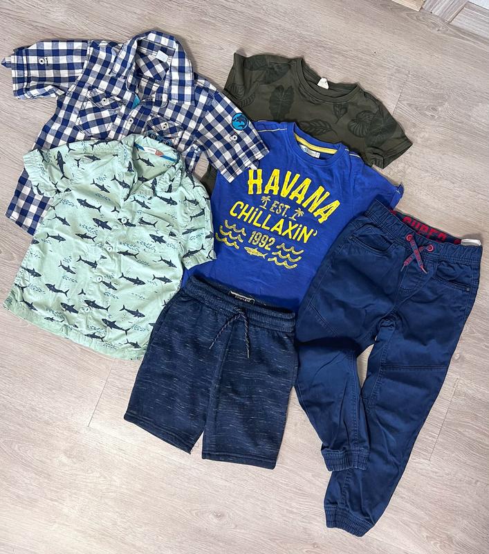 Речі на хлопчика 5-6 років в ідеальному стані: Теніска kiki&koko, John Lewis Футболки 2 шт Штани джогери Шорти primark