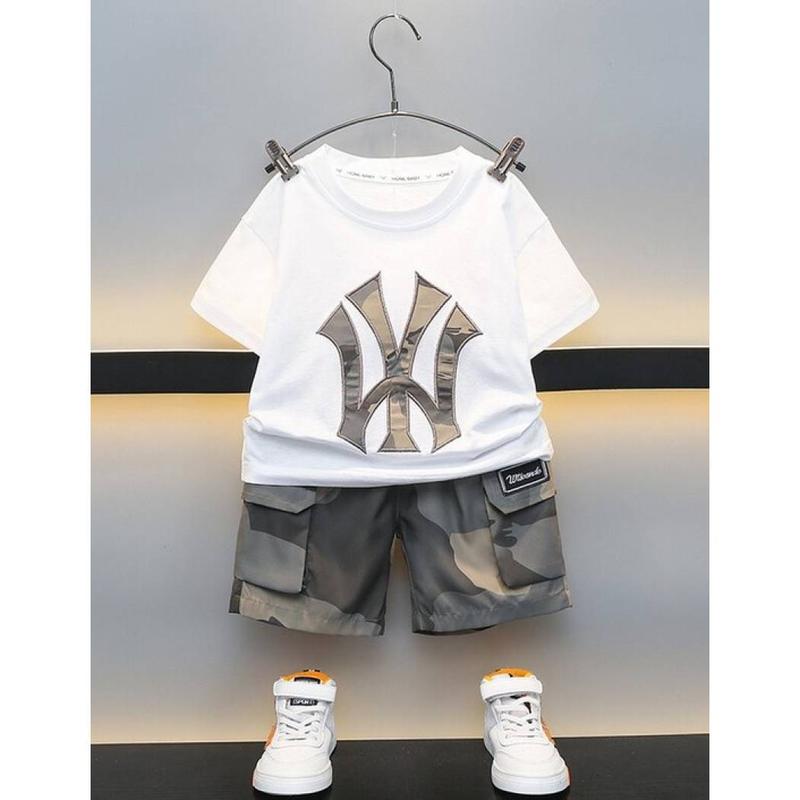 Костюм хлопчику на літо біла футболка і шорти камуфляж