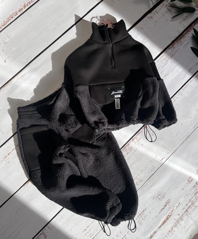 Костюм дитячий утеплений на флісі тедді в чорному кольорі