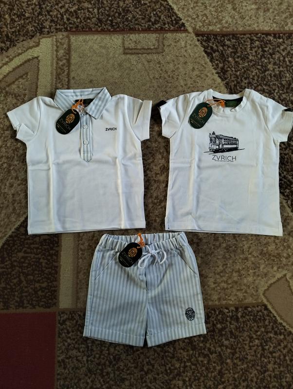 Набір одягу для хлопчика Дві футболки, звичайна і поло, та шорти Повнвстю нове, сток з Цюріху На 2-3-4 роки