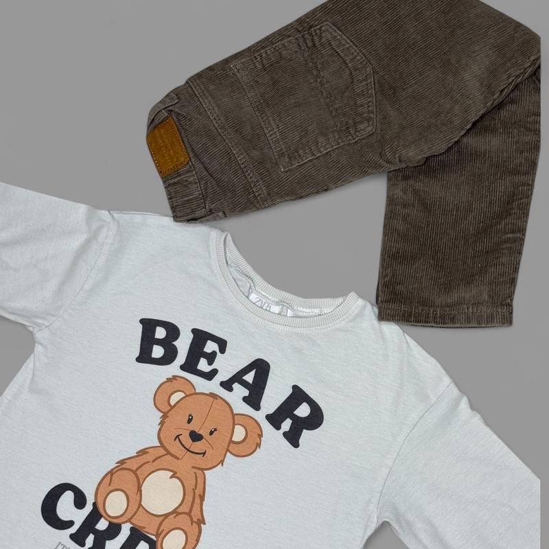 Набір від Za 🩶 яскравий та стильний Вік : 3-4 роки Штани Довжина: 55 см Внутрішній шов: 37 см Ширина: 23 см ( є стягнення ) Лонг Довжина: 34 см Довжина рукава: 27 см Ширина: 31 см