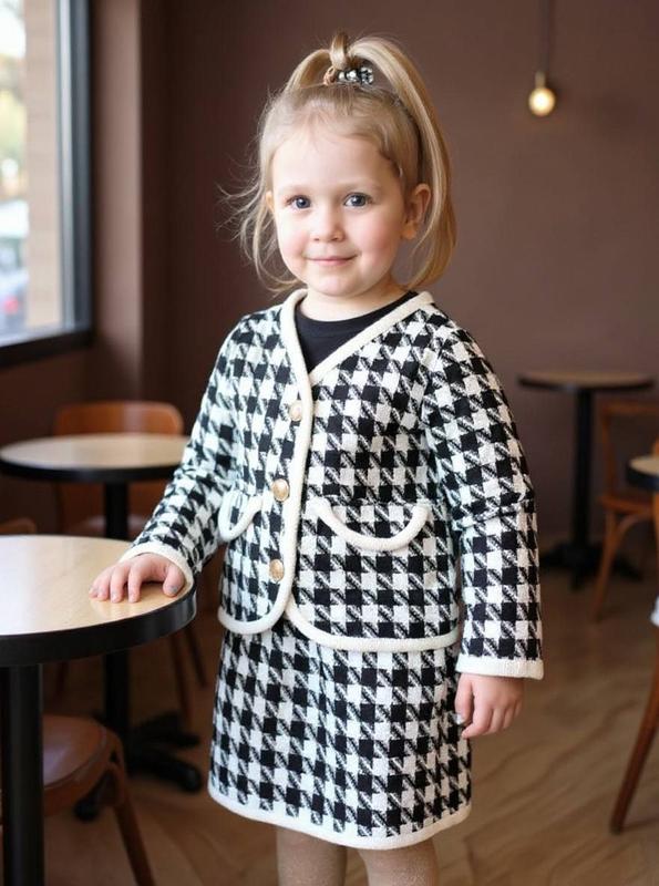 Ціна - 765 грн 🔹Елегантність, стиль і комфорт - усе в одному образі! Ідеальний варіант для свят, фотосесій, днів народження, стильних виходів і особливих подій 🔹Костюм виконаний з якісного твіду з трендовим візерунком «гусяча лапка». Жакет на ґудзиках з акуратною окантовкою виглядає дуже стильно та святково, а спідничка ззаду на резинці забезпечує зручну посадку та комфорт для дитини. 🔹 Підклад: легкий, по типу нейлону 📐ЗАМІРИ: 📌Розмір по бірці, орієнтуйтесь на заміри ▪️90 (~86)- піджак довжина 30 ширина 28, рукав 28, спідниця довжина 26 ширина 29 пояс 23 ▪️100 (~92)- піджак довжина 32 ширина 29, рукав 30 , спідниця довжина 28 ширина 30 пояс 24 ▪️110 (~98)- піджак довжина 34 ширина 30, рукав 33 , спідниця довжина 30 ширина 32 пояс 25 ▪️120 (~104)- піджак довжина 36 ширина 33, рукав 36 , спідниця довжина 32 ширина 35 пояс 26 ▪️130 (~110)- піджак довжина 38 ширина 34, рукав 39 , спідниця довжина 34 ширина 37 пояс 27 ▪️N08