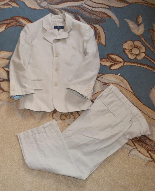 Костюм льон Debenhams р. 7 років 122 см Колір бежевий.Склад 55% льон, 45% бавовна Стан відмінний..Кишені на піджаку ще зашиті(так у всіх нових костюмів-для тих,хто не знає). Піджак Довжина 50 см, ширина від пахви до пахви 39 см, талія 35 см, рукав від плеча 43 см,від пахви 29 см,плече 9 см,від плеча до плеча 32.5 див. Штани Довжина 71 см,крок 50 см,ПОТ 31 см, ПОБІДИ 38 см, ширина штанини внизу 18 див. Оплата на карту Приватбанк Відправляю Новою Поштою та укрпоштою.
