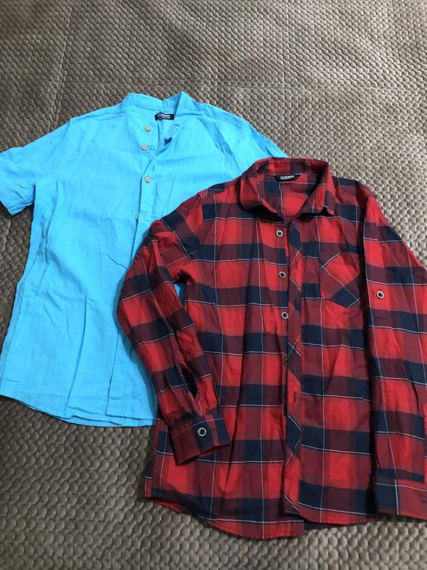 Класні рубашки для хлопчика. Ріст голубої 10-11 років, червоної 9-10, заміри надам по запиту. Не сток, без дефектів!!! Голуба йде на вигляд як льон тканина, червона котон. Дуже класні. Можна разом можна окремо купувати, можна комбінувати з іншими оголошеннями! Якщо за дві то 300. За одну 150 грн