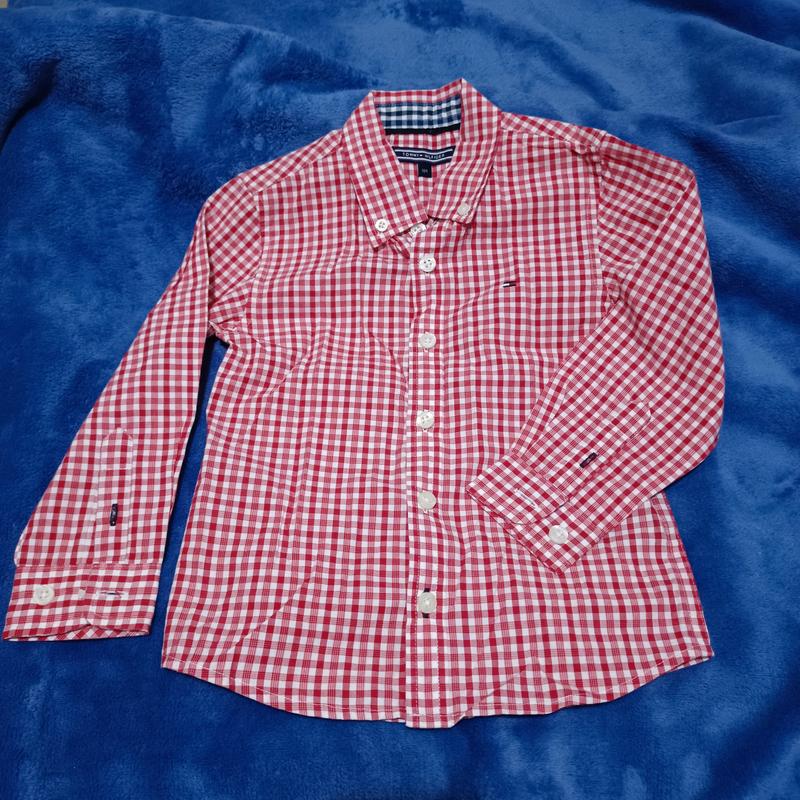 сорочка на хлопчика вік 3 - 4 роки колір червона в клітинку зріст 104 см заміри: довжина 42 см плечі 28 см обхват дід грудьми 30 см рукав 34 см