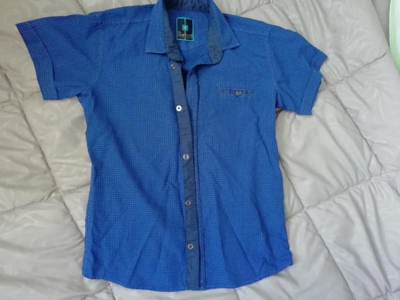 Детская стрейчевая рубашка на 10 лет в идеальном состоянии. Застежка на пуговицы.