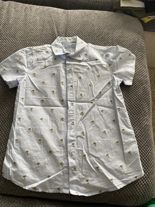 Очень красивая рубашка нежно голубого цвета с вышитыми пальмочками. Состояние новое, купалась для фотосессии.