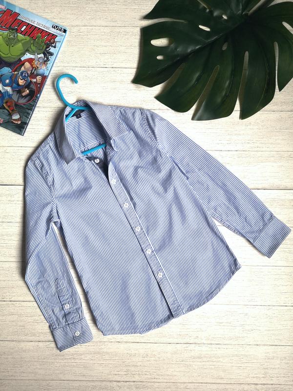 Классическая рубашка в полоску. Замеры : длина 47-50 (округлый низ), ширина 35, рукав 43.