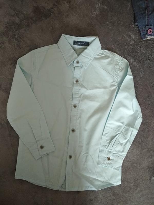 Новая рубашка на рост 122см. Длина 48см, ПОГ 36см, длина рукава 39см. Цвет свет голубой