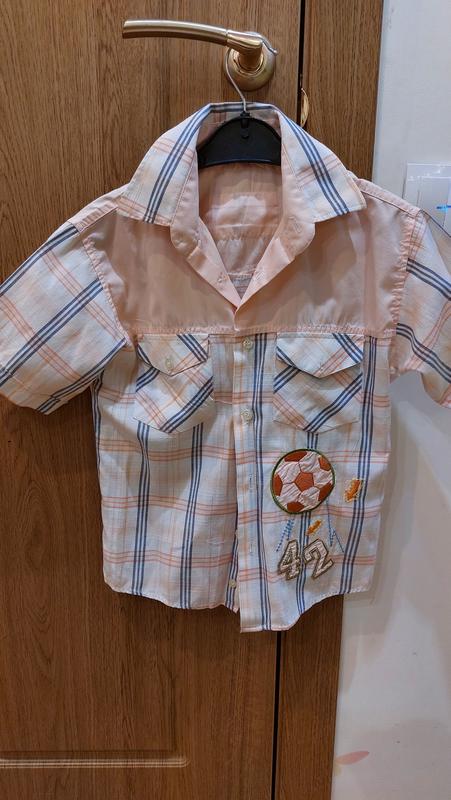 Очень легкая рубашечка на мальчика 7-8 лет, в идеальном состоянии. Длина от плеча 43 см, ширина 36 см.